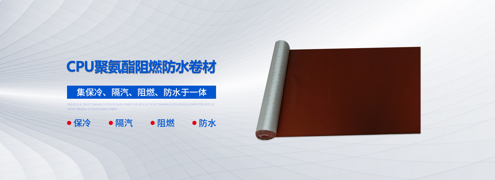 CPU系列彈性卷材以聚氨酯阻燃膠為主要原料,基層采用科學配方經(jīng)技術處理的增強布作胎基,在特殊的機械加工設備上復合CPU混合料,經(jīng)硫化、整理卷取等工序制成的高分子阻燃防水卷材。該產(chǎn)品及保冷、隔汽、阻燃、防水于一體,使用壽命長,其阻燃性能處于國內領先水平,填補了國內聚氨酯阻燃防水卷材的空白。